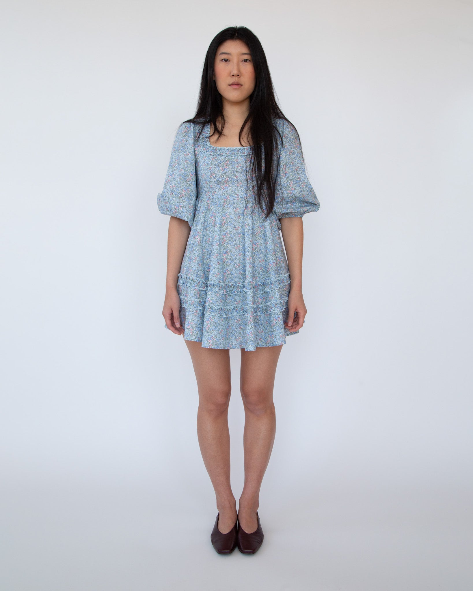 Introducing the Félicité Dress, a soft and feminine ditsy floral mini dress with 3/4 sleeves and delicate ruffle details. Effortlessly elevate your style with the back invisible zipper and look feminine in this charming piece. Perfect for any occasion.